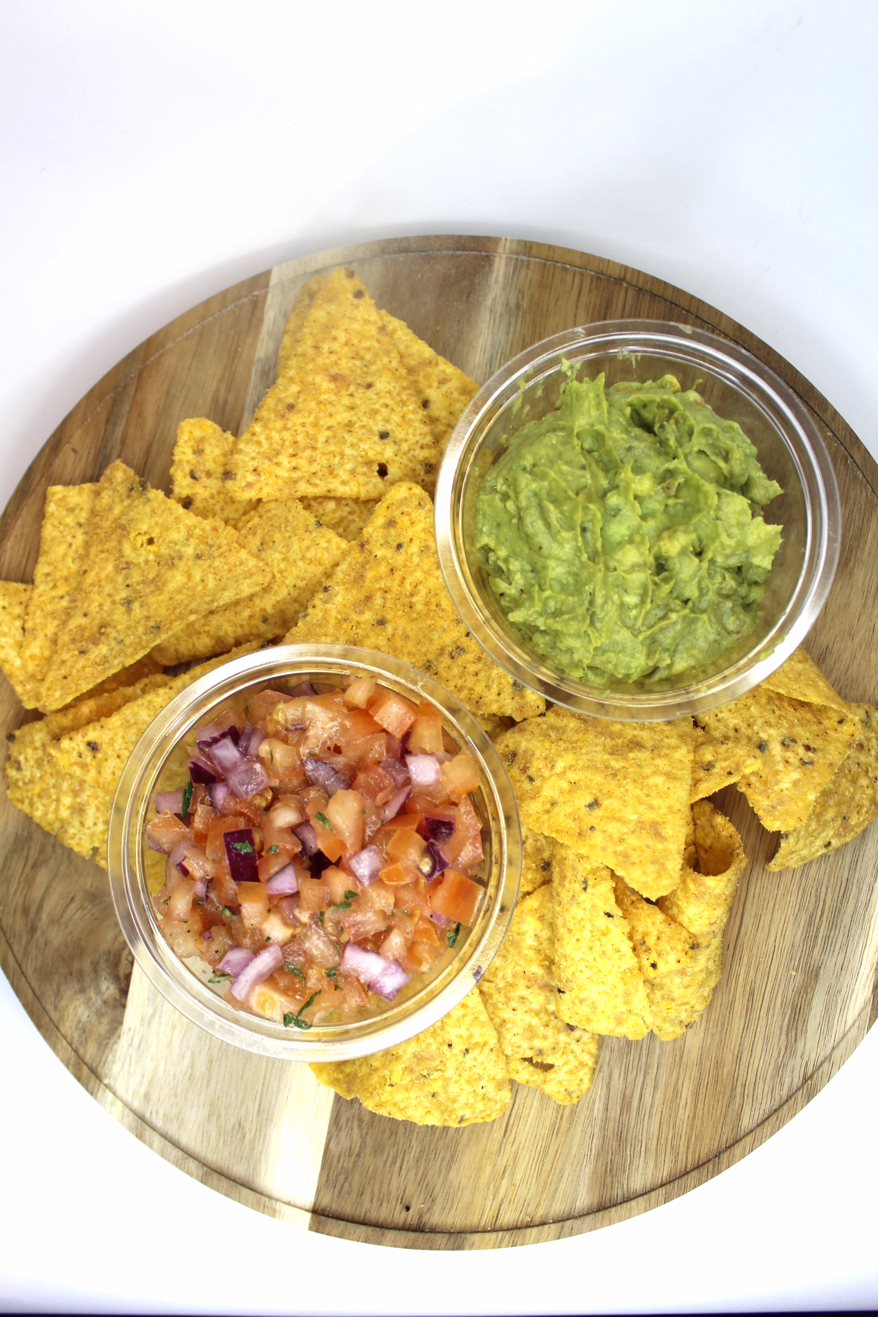 Crispy nachos served with a fresh and creamy guacamole and zesty salsa. Fully vegan for sharing.