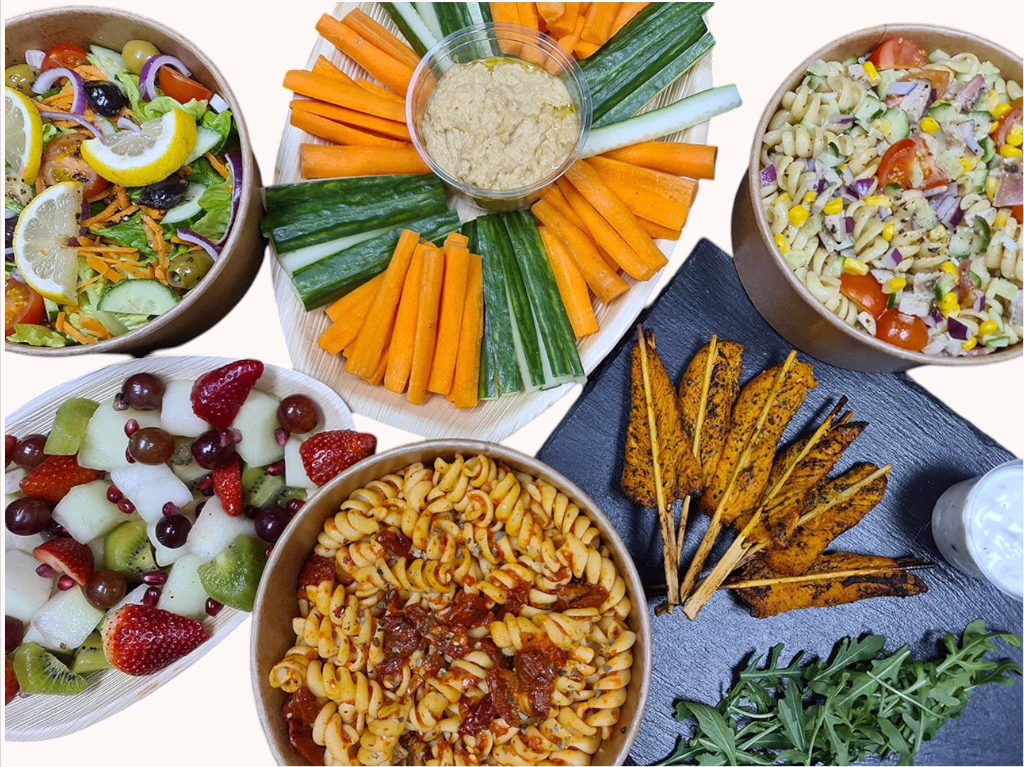 Each platter comes in an eco-friendly box/bowl and is labelled with its contents and allergens.