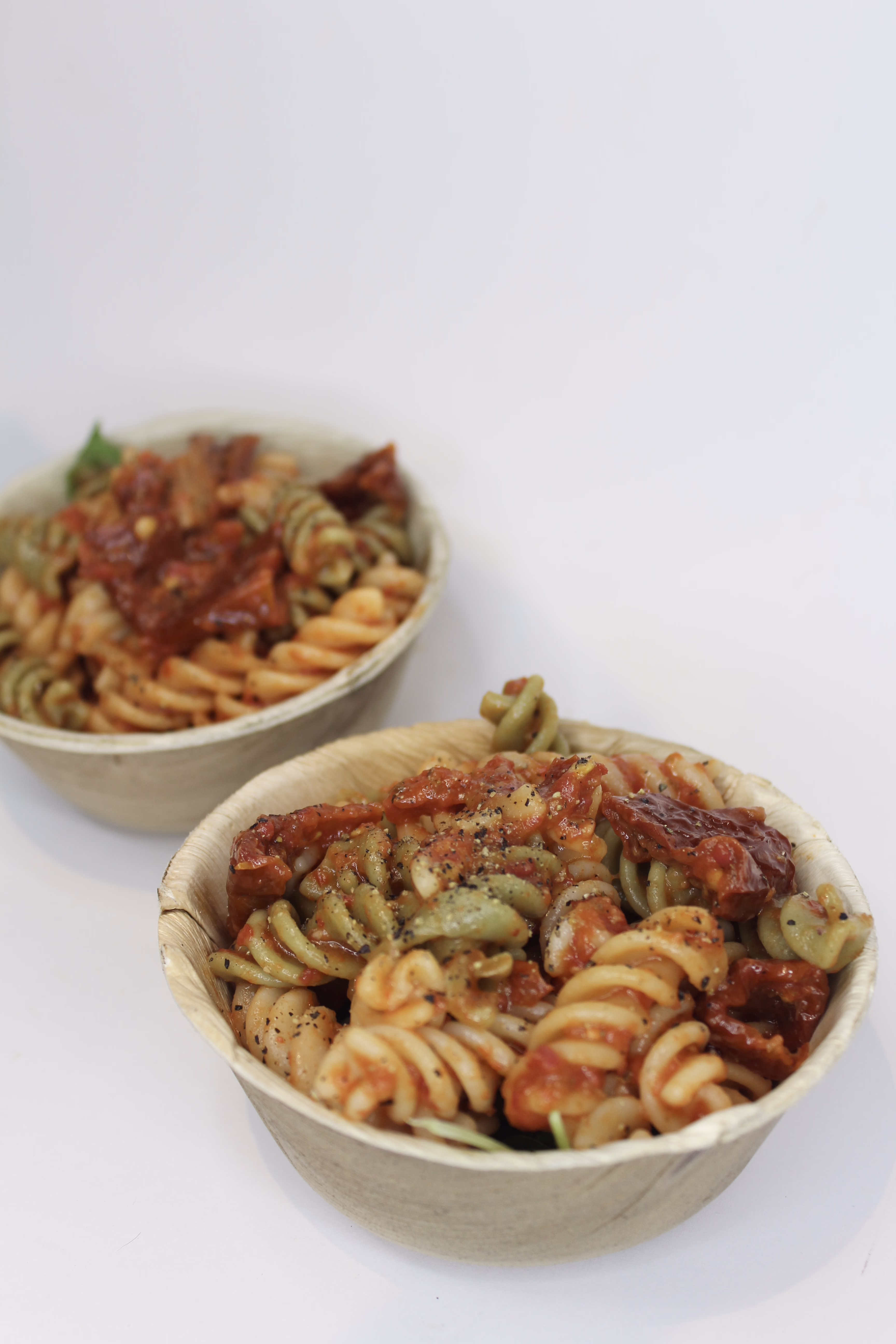 Our vegan, flavour-packed roasted red pepper and tomato pasta salad bowl.